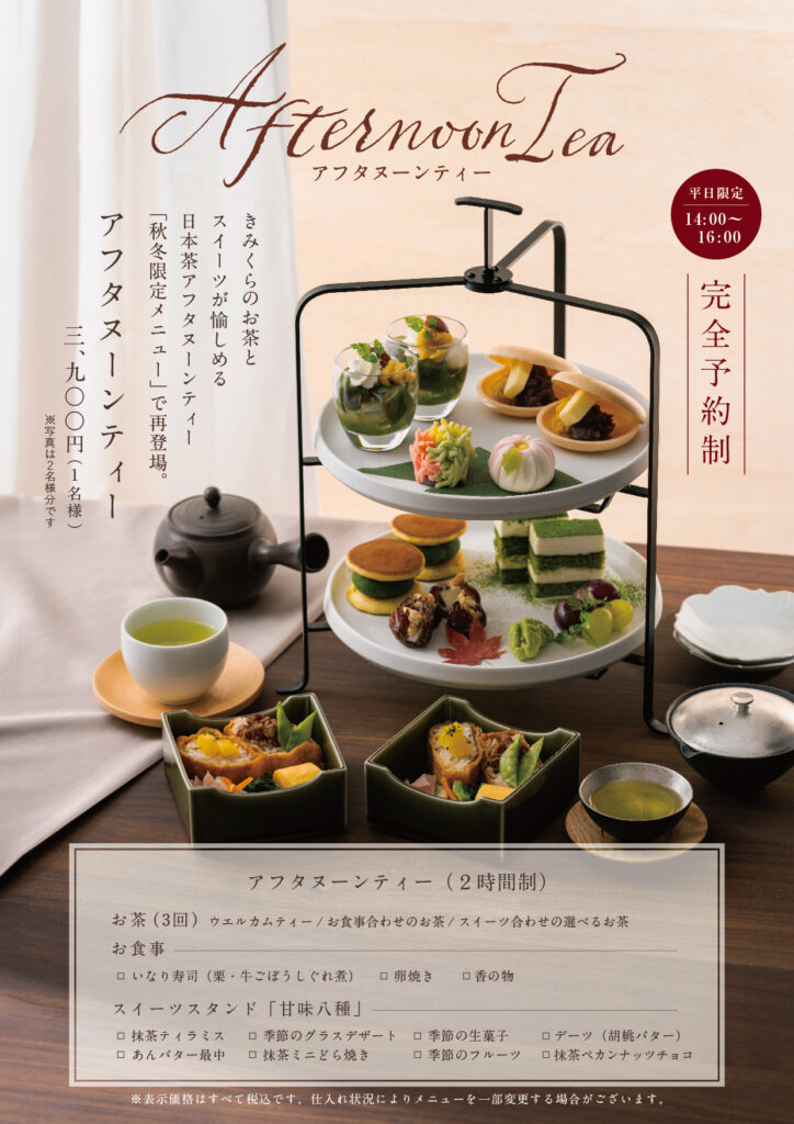 きみくら本店のアフタヌーンティーが、このたびWEBにてご予約いただけるようになりました。