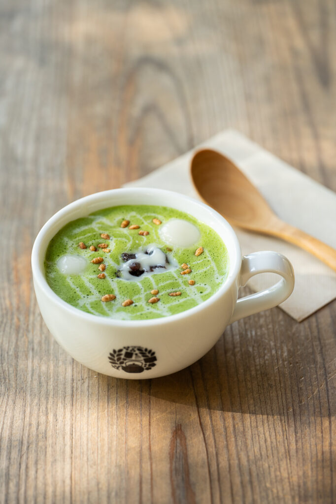 寒い季節にうれしい、抹茶の風味をやさしく楽しめるあたたかい「抹茶ミルクぜんざい」。